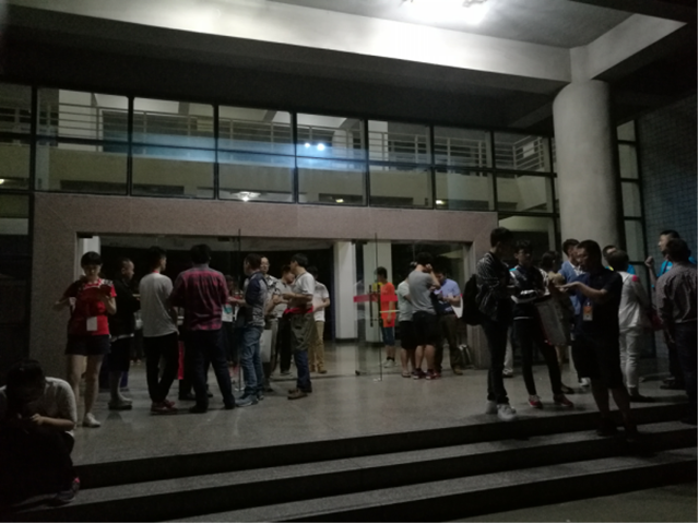 行进轮设计与激光加工直至深夜,各校指导教师正在赛场外等待……