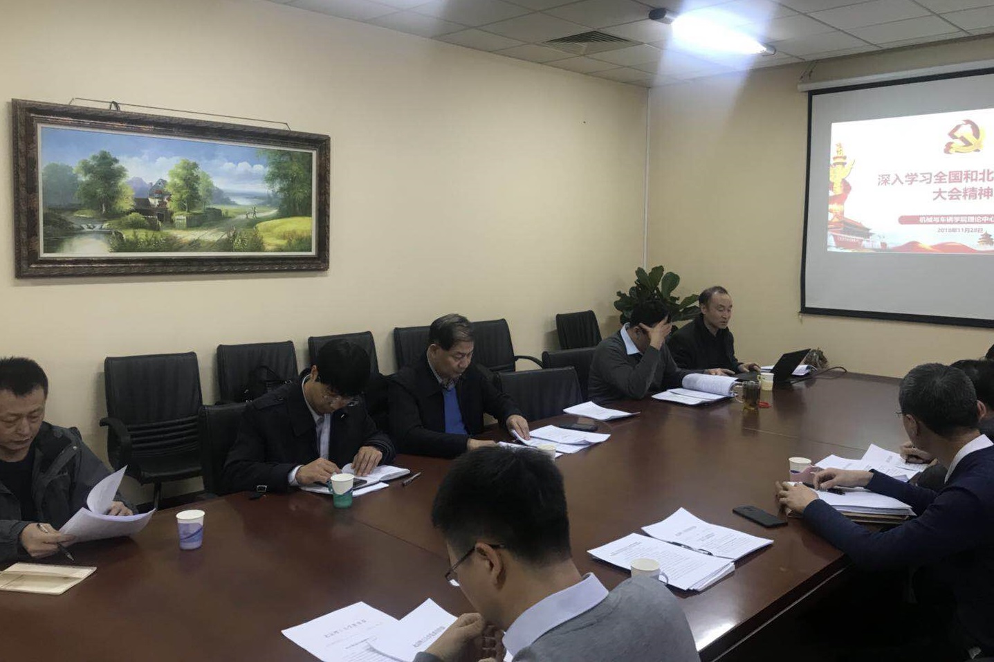 北理工机械与车辆学院党委于11月28日在1号楼232会议室,召开理论中心组学习会议,专题深入学习全国和北京市教育大会精神。校党委副书记、副校长项昌乐、学院院领导班子成员、党委委员参加了会议,会议由学院党委书记左正兴主持。