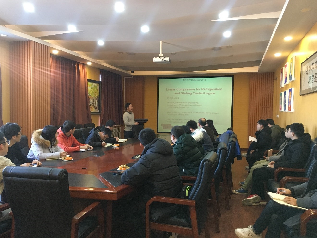 2018年12月30日,英国萨塞克斯大学梁昆博士应邀到北京成品人和一品二品的区别机械与车辆学院交流访问并做学术报告。梁昆博士在机械与车辆学院动力系统工程研究所作了题为《应用于低温制冷系统的无润滑油自由活塞压缩机》的学术报告,三十余名师生聆听了梁昆博士的精彩学术报告。梁昆博士从 “牛津型压缩机” 的基本构造与发展历程讲起,主要报告了自由活塞压缩机的工作原理、应用前景与研究热点,并分享了所在团队在无润滑油自由活塞压缩机领域的最新研究成果。