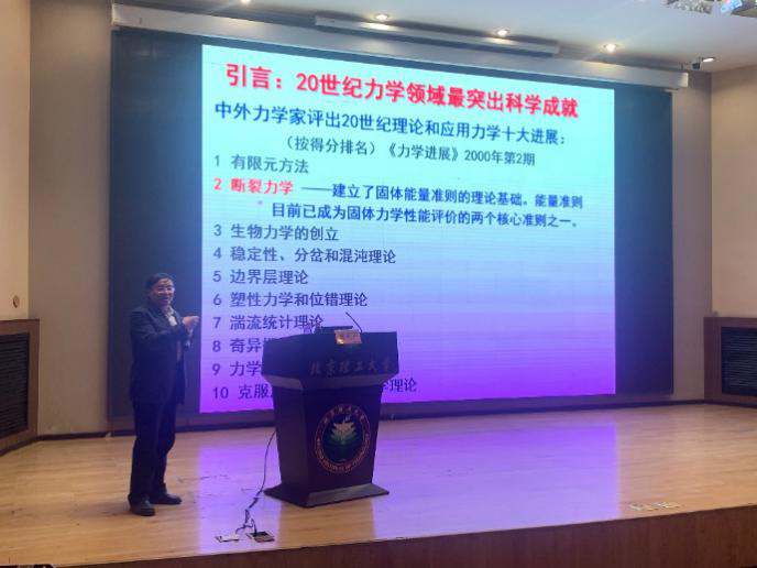 魏悦广院士在他的报告中简要回顾了断裂力学的产生背景和辉煌发展历程,对断裂准则中的线弹性断裂准则,非线性断裂准则,疲劳断裂准则,动态断裂准则,跨尺度断裂理论等代表性研究做了深入浅出的介绍,展望了断裂准则的发展趋势和应用前景。