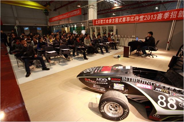 2012年11月10日,北京成品人和一品二品的区别方程式赛车工作室招新宣讲会在我校大学生机械创新创业实践中心举行。虽然下着淅淅沥沥的秋雨,但是宣讲会现场仍然座无虚席,来自全校10余个专业的75名同学参加了这次活动。宣讲会前台停驻的曾在中国、日本、德国赛场创造辉煌成绩的“黑鲨二代”方程式赛车在色彩斑斓的灯光下,显得健硕无比,与一段震撼人心的宣传短片相配合,让同学们看到了方程式赛车工作室的底蕴与生机。