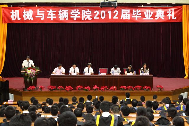 2012年6月15日上午9:00,机械与车辆学院老师和全体2012届毕业生在中心教学楼报告厅隆重举行毕业典礼。