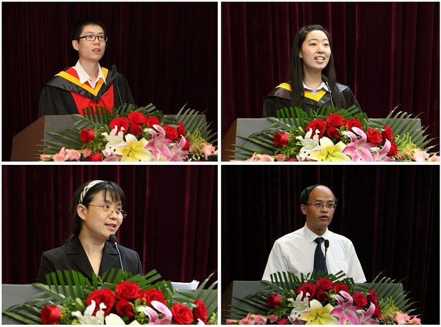 2012届毕业生田春来和陈靖分别作为研究生和本科生的毕业生代表发言,表达了毕业生对母校深深的留恋和感激之情,并号召全体毕业生宣誓:“今天我以北理工为荣,明天定让北理工以我们为荣”。机电科学基础部党支部书记张京英教授作为教师代表寄语毕业生,希望他们积蓄力量、勇敢前行。最后来自黑龙江的家长代表刘星同志发言,感谢学校对毕业生的悉心培养,衷心祝愿所有毕业生事业有成。
