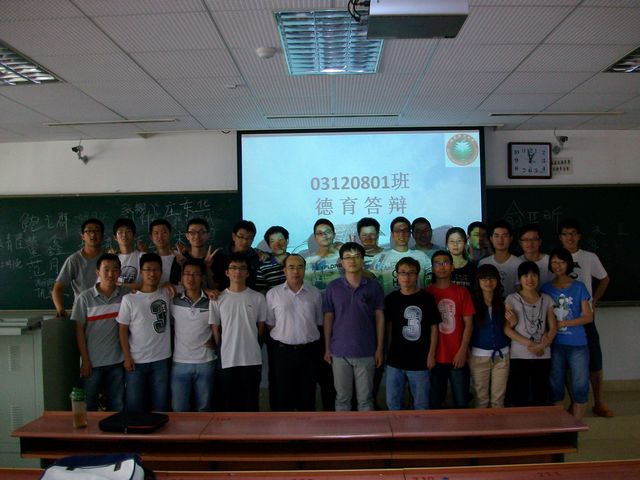 08级地面武器机动工程一班毕业德育答辩在回忆、总结、反省、感慨、启发、祝福中结束,马老师对本次德育答辩做了总结,并对同学们提出了一些职业发展的建议,更对同学们寄予了殷切的希望,希望每位同学都能走得更加精彩!最后马老师、唐老师与大家一起合影留念。