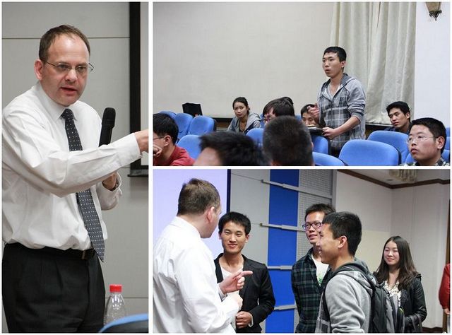 David Street总监主要从仿真行业的发展历史、现状和未来发展趋势三个方面做了主要讲解,突出了仿真在工业发展中的重要性,以及说明仿真技术是现代工程师必备的技能之一。与此同时,还对我国近几十年的快速发展历程做了讲解,进而分析了我国十二五规划做出的各种促进发展的措施。会议期间,研究生们对David Street总监幽默风趣的解说表现出浓厚的兴趣,同时提出了一些有关ANSYS仿真技术以及仿真行业的就业形势等问题,都得到了David Street总监的详细而幽默风趣的解答,使研究生们受益匪浅。