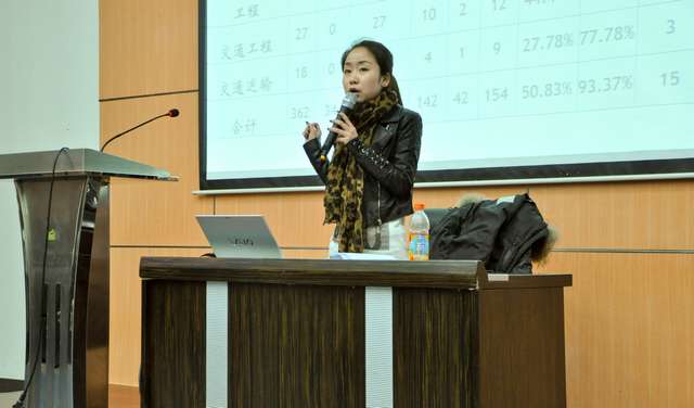 机械与车辆学院就业指导中心主任董倩倩老师从“毕业以后我们的去向”、“我们要什么样的未来”和“我们现在该做些什么”这三方面,以“2011年本科生就业情况”、“2011年研究生就业情况”以及“2011年本科生就业去向单位”等具体数据为依托,通过就业指导第二课堂这种生动活泼的新模式为同学们进行了就业知识的分享和指导。并通过引导同学们思考“描绘以后最想从事的工作”、“说明当今社会有哪些职业的人在从事这种或类似的工作”、“说明这些人都具有或应该具有什么能力和共性”以及“自己现在所做的事情对于你从事第一个问题中的工作是否有帮助”等生动具体的就业相关问题深入浅出的为同学进行了精彩的讲解和分享。