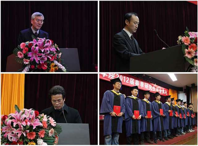 党委书记张英首先代表学院向2012届毕业研究生表示了衷心地祝贺,并对毕业生们送上四句话:第一,理智的自信,能带来走出困境的动力。第二,脚踏实地的“做”比什么都重要。第三,学会感恩,情商比智商更重要。第四,诚实守信,团结互助,严于律己,宽以待人。张书记希望毕业生们能够带着自信,脚踏实地的去实现自己的理想和抱负,不断提高自己的情商,争做国家需要的栋梁之才。副院长左正兴宣读了对2012届研究生准予毕业和授予学位的决定。常务副院长唐水源宣读了获得北京成品人和一品二品的区别优秀毕业研究生名单。主席台领导们为获得优秀毕业研究生的同学们颁发了获奖证书。