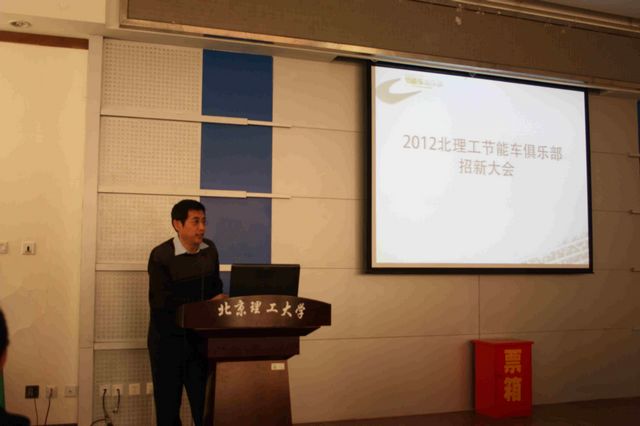 本次大会在第五届节能车俱乐部主席张海云同学的主持下有序进行。首先,郭顺宏同学向在座的各位同学介绍了他在节能车队的经历。接下来,张幽彤教授向大家介绍了节能车队从成立到正式更名为节能车俱乐部的五年里各届师兄的付出和最终取得的骄人成绩,鼓励各位同学顶住压力,树立信心,团队协作,独立创新,在节能车俱乐部这样一个平台上不断挖掘自己的潜力,不断证明自己。