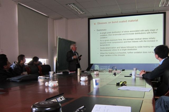 受机械与车辆学院左正兴教授邀请,英国皇家工程院院士、英国Bristol 大学教授Peter Flewitt于11月30日至12月1日访问了我校。访问期间,Peter Flewitt教授与热能与动力工程系相关老师就共同关注的研究领域进行了广泛深入探讨,初步制定了今后进一步合作的方向。Peter Flewitt院士还为热能与动力工程系师生做了题目为“Interaction of Residual Stresses in Thermal Barrier Coating”的学术报告,对结构表面残余应力测试技术及微观尺度下的材料表面特性研究进行了介绍,访问与学术交流活动获得圆满成功。