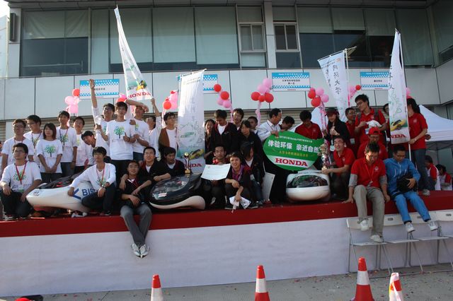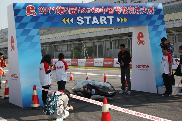 本次比赛分为预赛和决赛两个阶段,分别在11月12日和13日进行。12日的预赛,由于队员们有些紧张,加之对新赛道不熟悉,导致当天的预赛成绩很不理想,仅为672.2km/L,仅名列所有队伍中的第四名。当晚,队员们连夜开会进行总结,并根据当天的情况制定了更加成熟合理的驾驶策略,终于在第二天的比赛中稳定发挥,以920.49km/L的成绩顺利完成了比赛。赛后的车检过程中,来自Honda公司的日本工程师对我们的赛车设计产生了极大的兴趣,通过翻译多次进行了提问,最后经过组委会的协商,授予北京成品人和一品二品的区别昆河车队“最佳设计奖”。