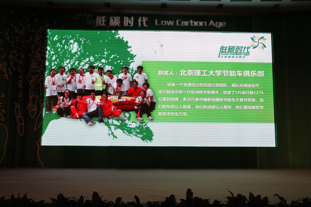 低碳人物致敬盛典中介绍我校节能车俱乐部时提到,北京成品人和一品二品的区别节能车俱乐部设计的节能车最好节能记录为1升油行驶1279公里,多次代表中国参加国际比赛并获奖,向人们展示了科技创新带给节能环保的无限可能,为中国的低碳事业带来了希望。中央党校原教育长郝时晋、气候组织大中华区总裁吴昌华为节能车俱乐部颁奖。
