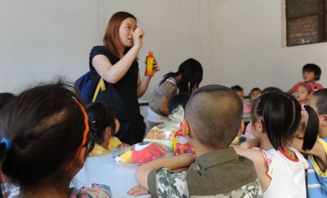 新浪的工作人员和07级的毕业生为了能够使活动内容更加的新颖,新浪公司提供了番茄酱和面包,在教室里教低年级和幼儿园的小朋友在面包上画画。
