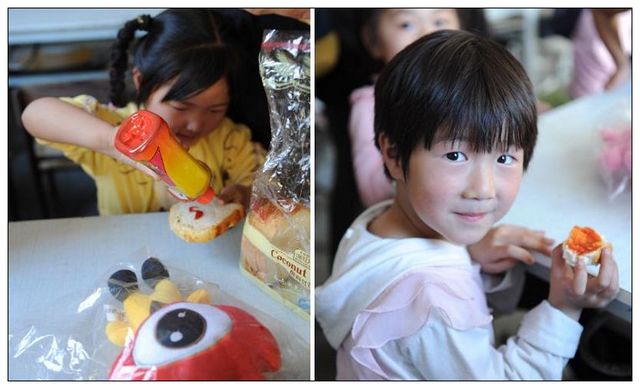 小朋友们被这一新鲜的活动方式所吸引,大家专心的听着如何去画画。在听完讲述之后有的小朋友已经按捺不住,想要试一试了,很多人拿起了番茄酱在面包上花下自己喜欢的形状,在画完之后亲口品尝着自己制作的番茄面包,心里异常的喜悦,很多小朋友对面包和番茄酱爱不释手。