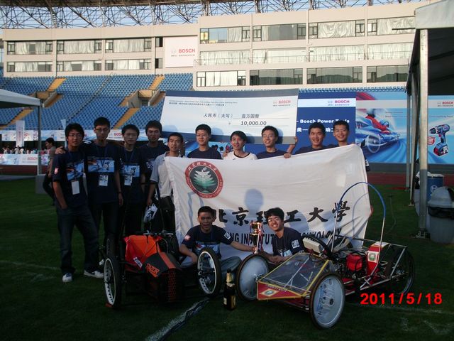 5月17日,“驱动创意——博世电动工具亚洲创意车设计大赛2011(中国赛区)”决赛在上海源深体育场举行。来自全国8所大学的10支车队加了比赛,我校参赛队奋进者车队凭着出色的实力和稳定的发挥与来自北京航空航天大学、上海交通大学、同济大学等参赛队经过激烈的角逐,终于成功卫冕这项国际赛事的中国赛区冠军,并与获得亚军的同济大学志远车队代表中国参加9月举办的亚洲区总决赛,与来自菲律宾、泰国、马来西亚和韩国的8支大学生车队同场竞技。此外,我校另外一只参赛队锋速车队获得“优胜奖”。
