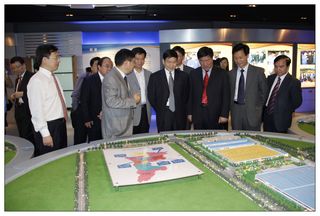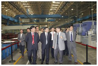 续约仪式后,企业领导陪同高校代表参观公司展厅和厂房