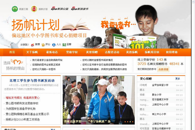 新浪扬帆计划-北理工志愿者新闻链接地址http://yangfanbook.sina.com.cn/news/58