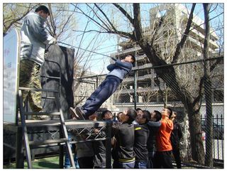2011年3月27日,在学院学生工作办公室老师的带领下,机械学院共产主义实践会组织精英训练营的学员在北京工业大学艺术学院的户外训练场进行了户外素质拓展训练。