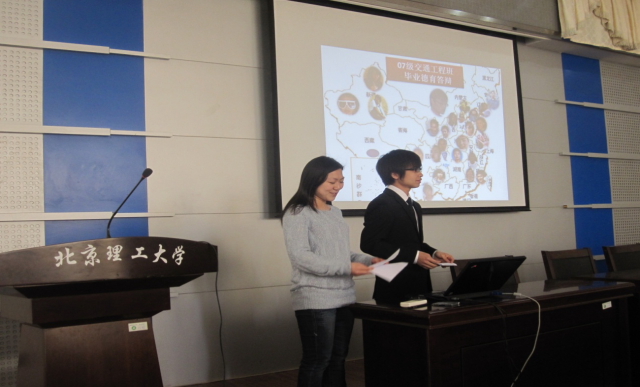 机械与车辆学院07级交通工程班“毕业德育答辩”于2010年3月21日下午13:00在车辆重点实验楼报告厅举行,并取得圆满成功。此次德育答辩在学院的组织下经过了细致的准备,现场气氛热烈,同学们以“放飞青春”为主题总结了自己在大学度过的四年青春,并对未来进行了充分的规划和展望。交通工程系主任高利老师、班主任谭华春老师参加了会议。