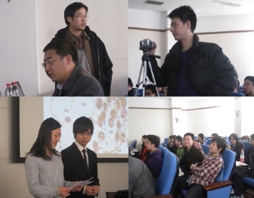 答辩现场工作由班长阳章勇和刘卉元主持,我班对答辩工作在形式和内容上进行了创新:按照每位同学的籍贯将其头像放在中国地图相应的省份上,并进行链接,每位答辩结束的同学可以自由选择下一位答辩的同学,答辩结束后大家进行提问。现场气氛紧张而热烈,同学们情绪高昂。现场全程摄像由林荣杰负责。