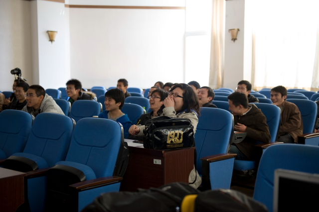 观看完纪录片后,班主任尹老师上台抽签。第一个上台答辩的是李海强同学。同学们按照事先约定好的方法,依次上台、抽签、答辩。答辩过程中,不乏搞笑的台词,还有同学们深入思考后迸发出的智慧火花。“相逢是首歌”、“一开始我们可以不追求做太阳,可以做一颗星星,慢慢我们会发现,其实我们也是一颗恒星”、“过去对于我们的意义是,不开心的是我们受到教育,开心的留给我们回忆”、“对于未来,且行且思,懂得饮水思源,懂得心存畏惧”、“学习就像种地”等等。听着台上同学的讲述,台下的同学时而欢笑,时而思考,时而兴起讨论两句,气氛欢快而融洽。答辩的同学除了现在行政班到场的30名同学外,还有转出的两位同学。
