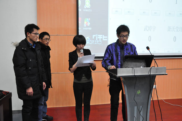 所有的候选人均非常系统地阐述了自己对漫步者奖学金的宗旨——诚信、勤奋、热情、无私的理解,并讲述了自己在为集体贡献、为同学服务方面所做的事迹。来自管理与经济学院的常昊然介绍了自己担任京工新闻社社长、班长期间组织微积分复习串讲、北海春游、十渡秋游、元旦晚会、首都博物馆参观等班级活动,并讲述了自己如何在日常活动中成功争取企业横向支持。来自机械与车辆学院的胡适野介绍了自己60周年国庆担任校志愿者期间曾经多次30多小时不间断工作,为游行方阵的2400名同学提供合练服装、道具、食品、矿泉水的感人经历。同样来自机械与车辆学院的陈婧介绍了自己作为一个热情开朗的文艺委员、一个永远的队长替补、一个保持微笑的志愿者、一个温柔细腻的女生、一个坐在路边鼓掌的人怎样做到在日常点滴琐事中给所在的集体带来温暖,她也被所有评委一致认为是本次答辩中最符合漫步者奖学金宗旨的选手。