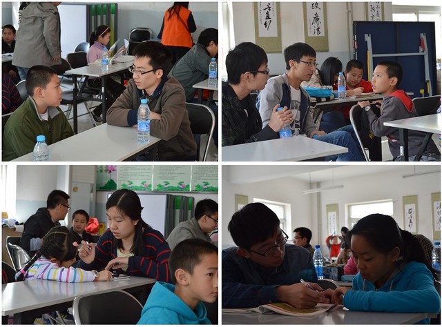一个多小时的车程没有让志愿者们有一丝的疲惫与懈怠,大家怀揣着满满的爱心与热情走进金顶街社区办公楼,见到了早已等在那里的孩子们。志愿者与街区的孩子们结成对子,分别就坐于早已布置好的教室里,进行一对一的辅导与帮助。我们的志愿者分为几组,擅长英语的同学,帮助需要练习英语口语的孩子;数理方面成绩不错的同学,专门帮助初高中学生解决数理难题。整个活动在轻松愉快的氛围中进行,在志愿者们的耐心帮助下,孩子们解决了不少课业上的问题,脸上都露出了灿烂的笑容。