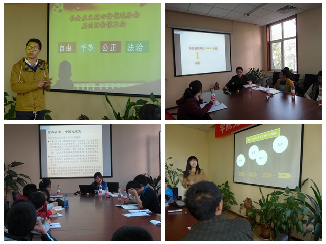 为切实引导和帮助青年学生以习近平总书记系列重要讲话精神为根本遵循,认真学习和践行社会主义核心价值观,进一步促进青年学生“比理想、比学习、比成才”,学院团委依托理论学习社团于2014年10月26日开展了以“学习和践行社会主义核心价值观”为主题的理论学习论坛。