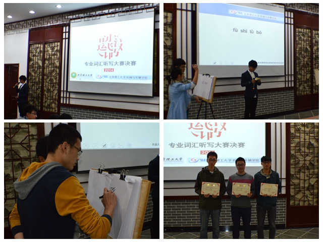 本次大赛的参赛者都是由学院各研究生课题组、各本科生班级推选出的汉字书写能手,比赛词汇为50%的中华传统词汇和50%的机械行业专业词汇。大赛获得了全学院同学们的积极参与,共有40余名选手报名参加。经过预赛、复赛、决赛3个环节的激烈争夺,11级车辆工程专业的赵明杰同学拔得头筹。大赛受到了同学们的一致好评,同学们纷纷汉字听写大赛表示让自己获益匪浅,加深专业知识的同时得到了传统文化知识的熏陶。
