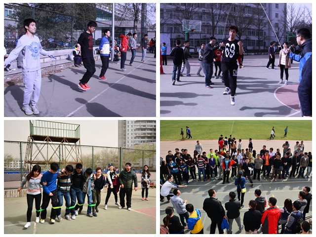 学生的趣味比赛运动会在3月28日上午于南篮球场举行,比赛项目包括跳绳、踢毽,集体跳绳、六人七足、拔河和集体投篮。同学们参加踊跃,积极热情,充分展示了我院学生全面发展的优良素质,也体现了各集体的团队协作精神。