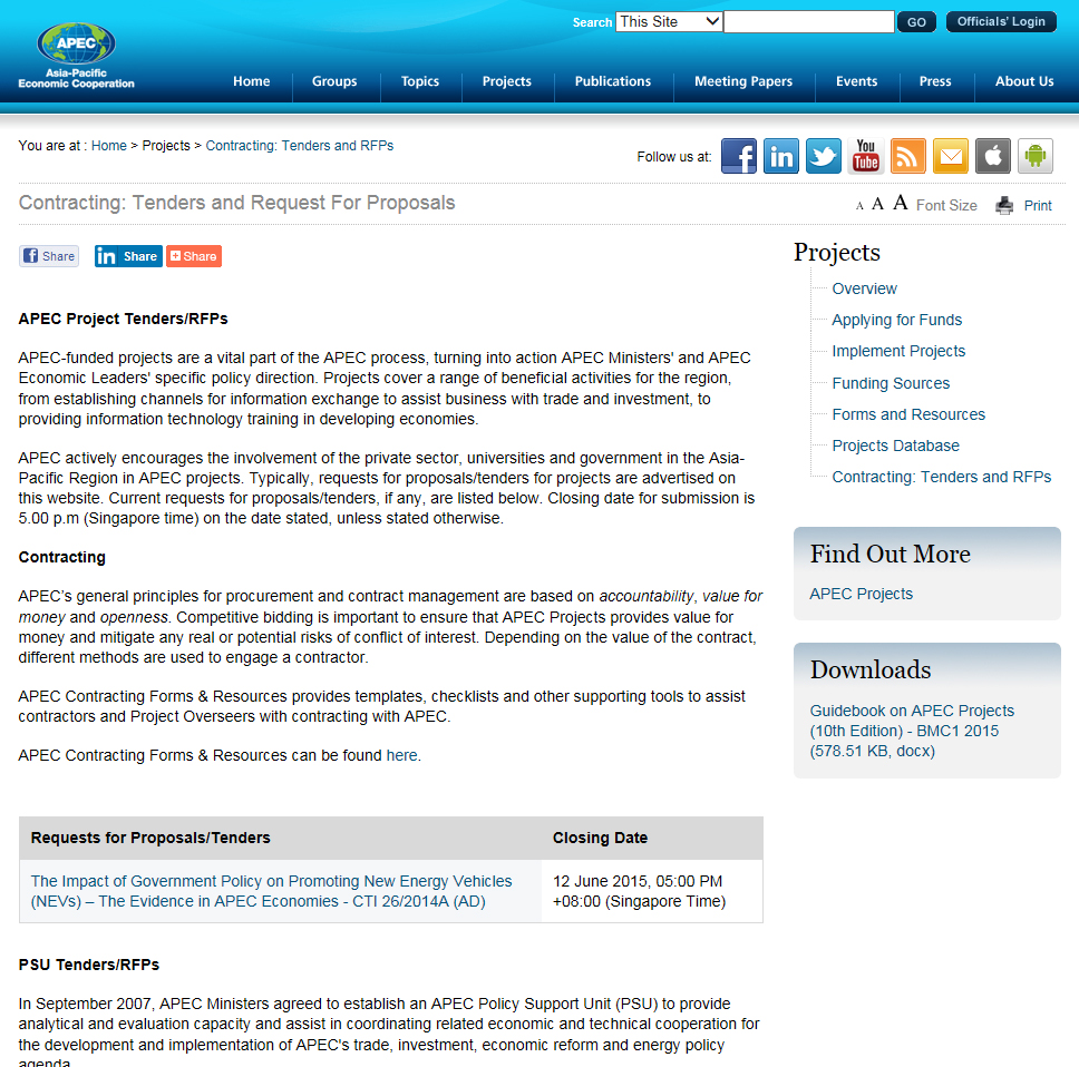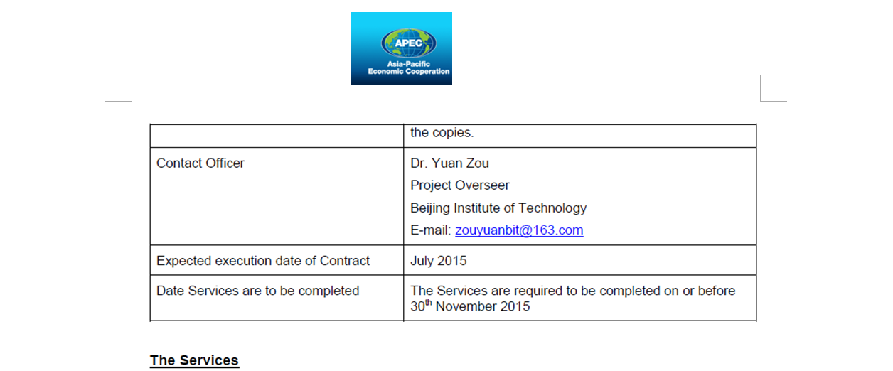 在APEC的官方网站文件中(http://www.apec.org/~/media/Files/Projects/TendersRFPs/2015/CTI 26 2014A_RFP.pdf),我校机械与车辆学院副教授邹渊老师任项目负责人和官方联系人。