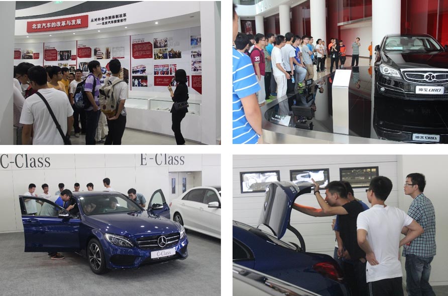 同学们在北京汽车研发基地全面了解了北京汽车的发展史,参观了北京汽车自主研发的发动机和汽车。在北京奔驰汽车有限公司看到了奔驰汽车装配过程的严谨和下线的华丽,并仔细“研究”着奔驰,体会着“The best or nothing”的内涵。