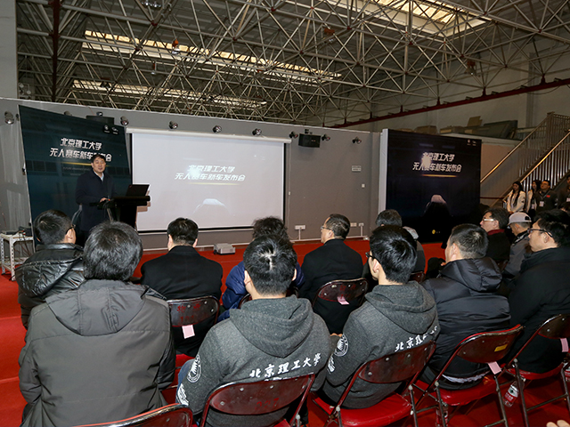 机械与车辆学院常务副院长胡纪滨教授首先致辞,在学校大力推进综合改革工作的背景下,学院大胆尝试,积极探索新时期、新需求下的科学研究与学生科技创新工作相结合的模式,而无人赛车队的成立,正是学院创新机制的一种探索。他表示,世界首辆无人驾驶大学生方程式赛车的研制,充分代表了我校、乃至中国大学生的水平,具有极高的展示度与学界影响力,学院也将以无人赛车队为试点,探索面向研究生的科技创新团队的运营模式,并欢迎来自全校不同学院的研究生充分利用无人赛车平台开展学术研究。