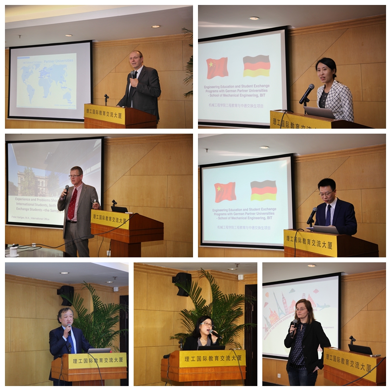 在机械与车辆学院、国际交流合作处、教务处、留学生中心的共同策划与组织下,“中德工程教育研讨会”(Sino-German Seminar on Engineering Education - ‘New Stage, Creative Collaborations’)于2017年3月28日至3月29日在北理工国际交流中心顺利举行。来自亚琛工业大学、莱布尼茨-汉诺威大学、马格德堡大学以及康斯坦茨应用技术大学的德方工程教育与国际化管理专家和我校20余名教师代表参加研讨。国际交流合作处处长唐水源、副处长邢清清、教务处副处长徐瑾、留学生中心主任汪滢、教育研究院书记庞海芍、学术期刊办公室副主任范春萍、宇航学院副院长武志文等和机械与车辆学院党委书记左正兴、副院长冯慧华、副院长何洪文出席了研讨会,会议由冯慧华主持。
