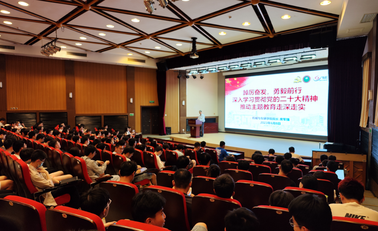 为贯彻落实党的二十大精神,深入推进学习贯彻习近平新时代中国特色社会主义思想主题教育,进一步提高学生党员和入党积极分子的政治素养和思想理论水平,机械与车辆学院于6月8日在中关村七号楼报告厅举办主题教育专题党课暨2022-2023学年入党积极分子培训。院长席军强担任主讲人,党支部书记、新发展党员和入党积极分子参加培训。会议由宋春宝主持。